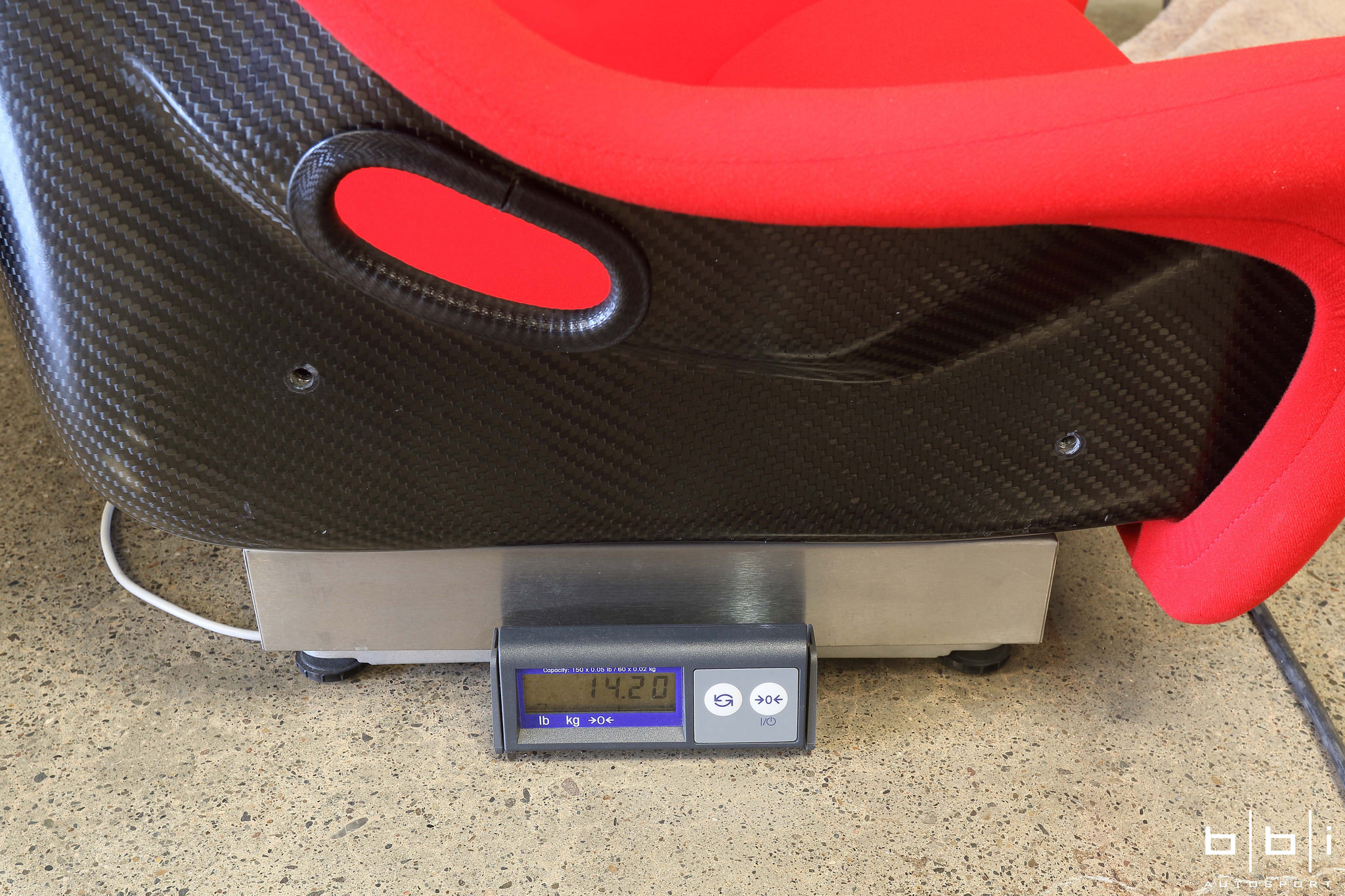 Sabelt Dry Carbon Seat Weight. Photo: Jerry Truong / BBi Autosport