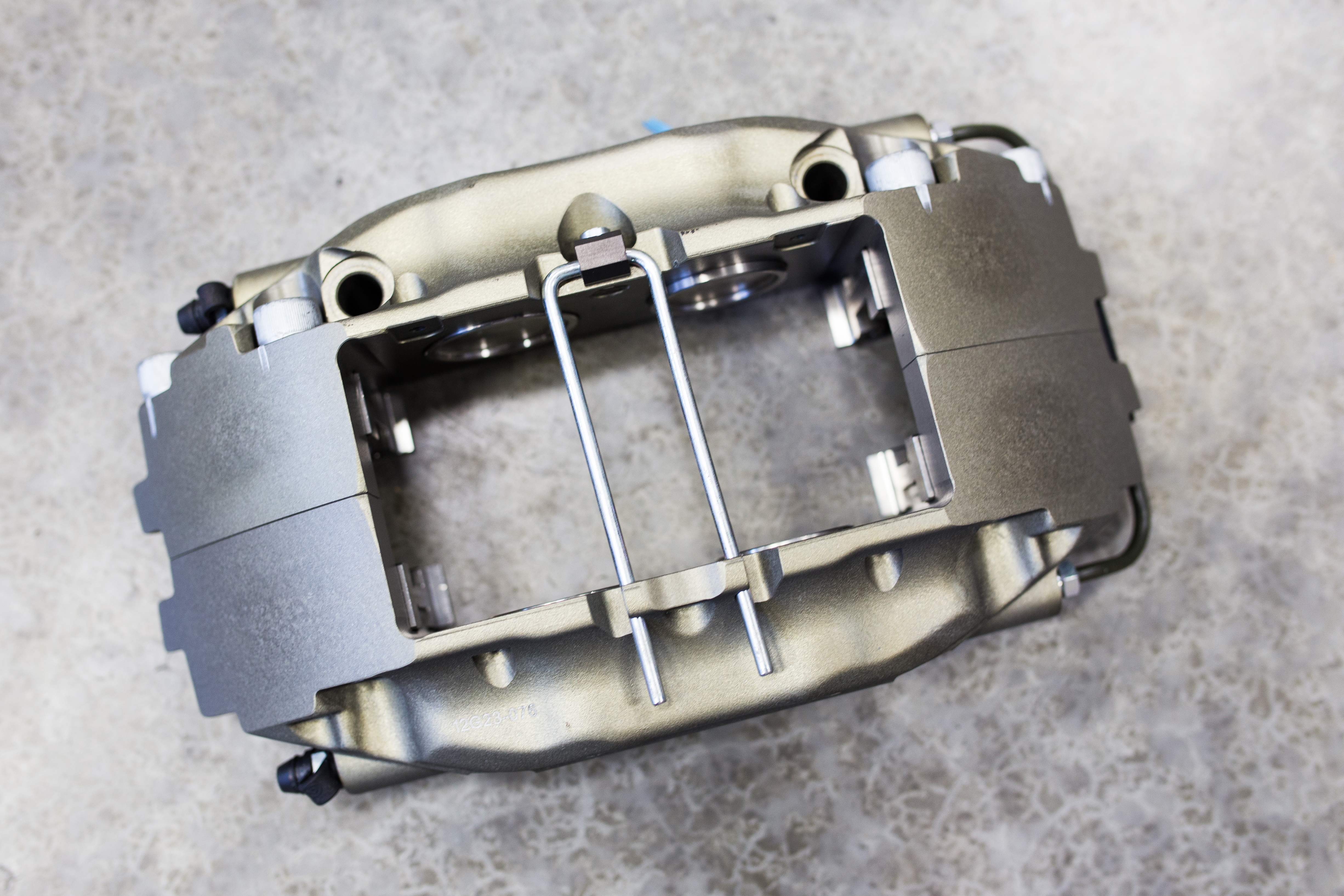 GMG’s Cayman GT4 Brembo OE brakes being swapped out for Brembo Performance 2-piece disc and Race Technologies pad upgrades