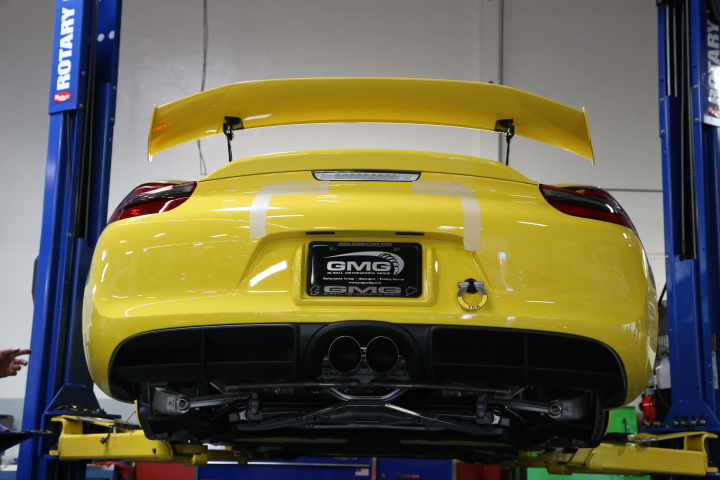 The Porsche 981 Cayman GT4 shares the same front end components as a 991 GT3. Photo: GMG Racing