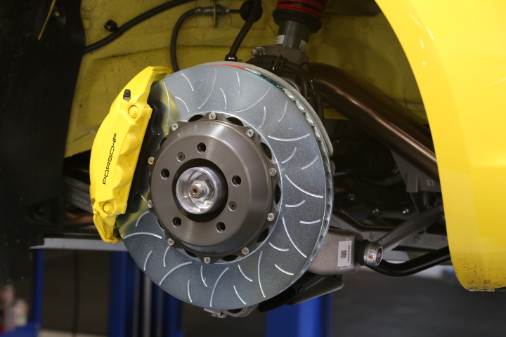 The Cayman’s inherent tendency to pitch more under braking increases front axle brake demand, but inherently results in unsettling the rear axle under braking. However, this can be tuned with managing the operating temperature of the brake disc and also by using different friction compounds that are optimized for the specific brake temperature windows.