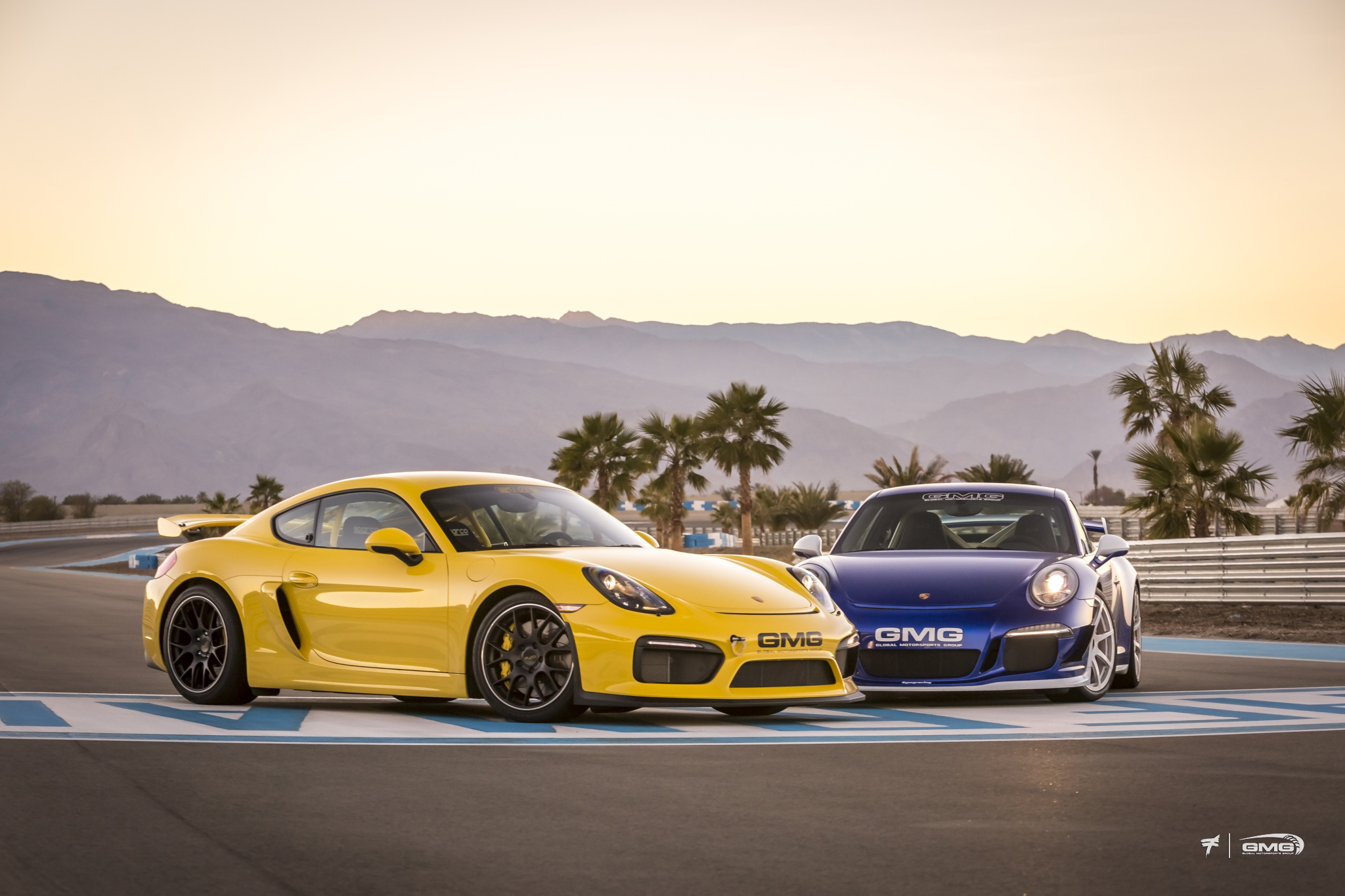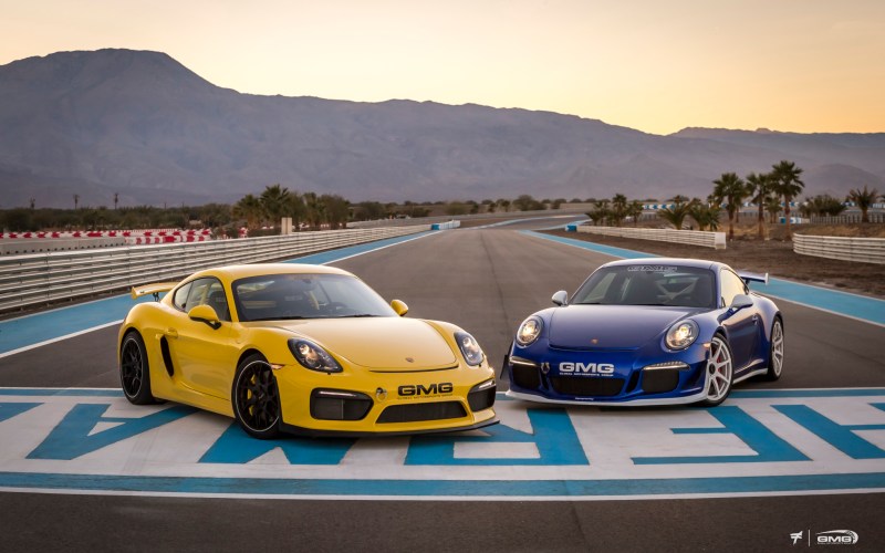 Porsche 981 Cayman GT4 vs Porsche 991 GT3. Photo: GMG Racing